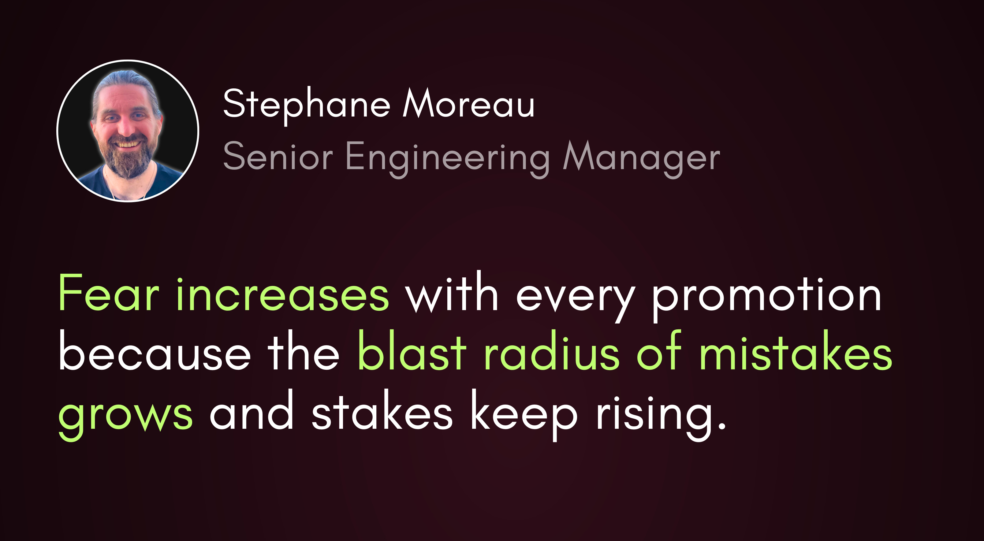 Senior leaders have to deal with strategic bet anxiety and board pressures. They might struggle to justify technical debt work to the board who just “doesn’t get it”. They make layoff decisions affecting hundreds while fearing they’ll be remembered as “the leader who ran things into the ground”.